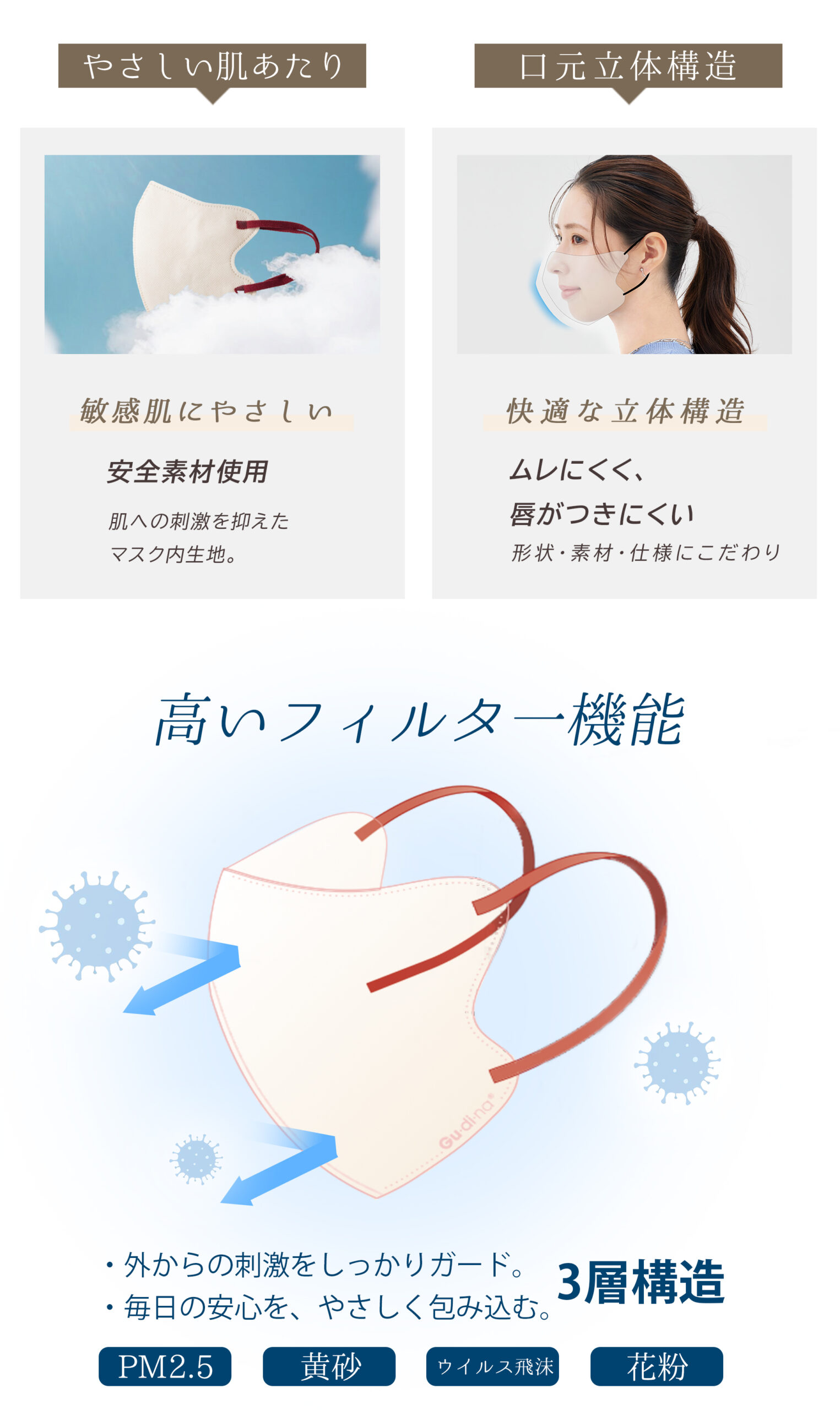 1047 美しい発色、息づく透明感。 高通気ヴェール製法が、呼吸するたびに肌を美しく魅せる。 すべての商品|MASK|BEAUTY・LIFE|PET グディナ ヴェールマスク 個別包装 10枚 Amazon 楽天市場 Q10
